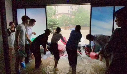 為盡快堵住倒灌的洪水大家群策群力,有的員工沖進大雨中尋找沙袋堵水;有的員工往高處搶搬辦公設(shè)施或盡量抬高,盡量避免雨水浸泡;有的員工毫不猶豫的將自己的毛毯棉被拿出來去堵水,有的員工立即抄起舀水的工具參加到抗擊水患、保衛(wèi)公司的戰(zhàn)斗中。大家爭先恐后唯恐不能為公司出力,在大門前站不下太多人往外潑水的情況下,身單力小的員工主動一桶一桶從后門往外提水,為我們的公司少受些損失而默默的奉獻著。